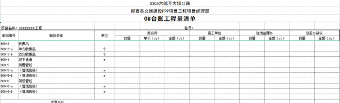 “0#”臺(tái)賬按單位、分部、分項(xiàng)工程劃分標(biāo)準(zhǔn)編制,可以將計(jì)量支付與質(zhì)量檢驗(yàn)評(píng)定有機(jī)結(jié)合起來,這樣可以使質(zhì)檢、測(cè)量、實(shí)驗(yàn)、計(jì)量等部門的內(nèi)業(yè)工作都在同一個(gè)規(guī)則下進(jìn)行,提高了整個(gè)項(xiàng)目(合同段)內(nèi)業(yè)管理的效率。